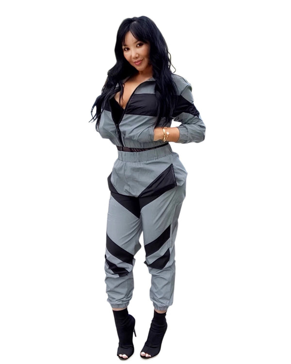 Our State Of Mind Zipper Jogger Set Featuring Zipper Sleeve Hoodie Top Paired With Zipper Strap Pants With Side Pockets Elastic Waistband Joggers Knit Material Some Stretch True to Size...