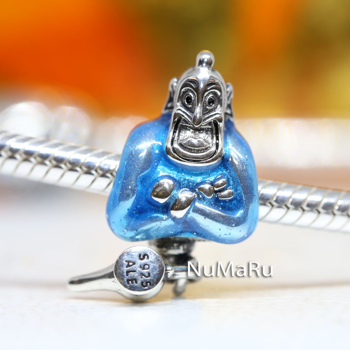 Crafted from sterling silver, Genie is finished with characteristic glittering blue enamel details, and is attached to a dangling lamp, as if he's just been summoned. Add this meaningful symbol to your favorite charm holder and carry your wishes with you always.