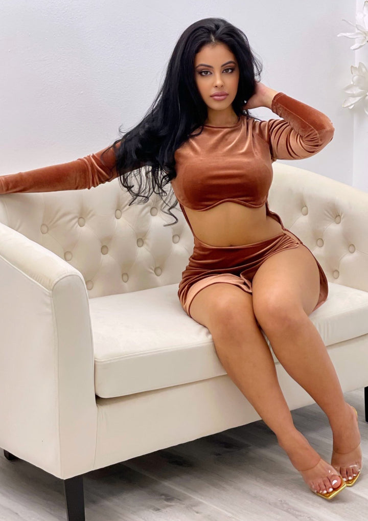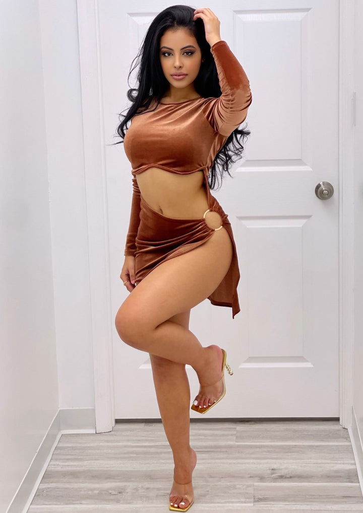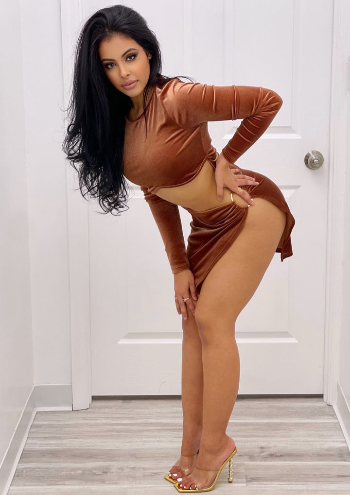Anne Velvet High Slit Cut Out Mini Dress