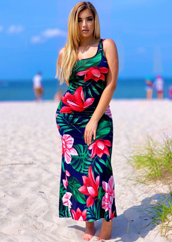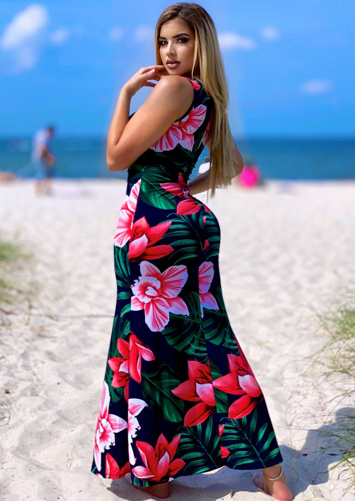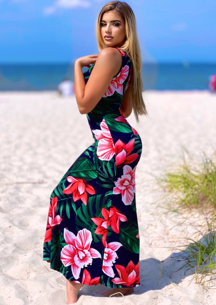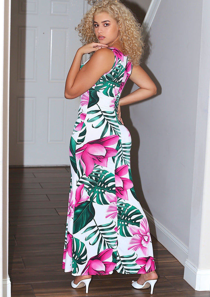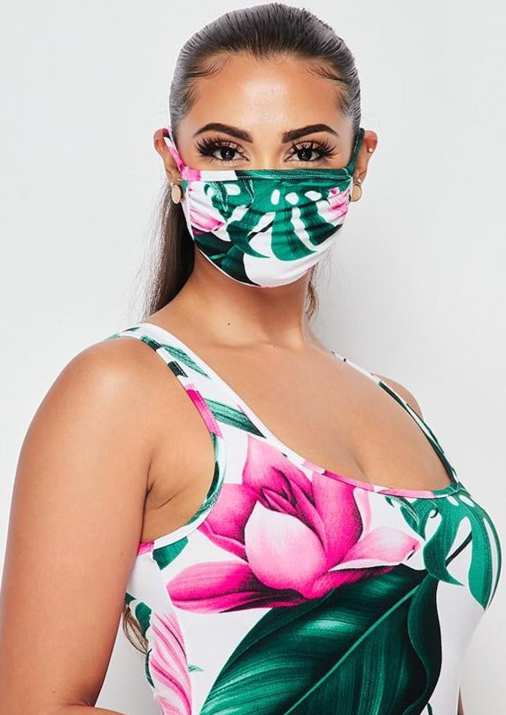 Celandine Floral Printed Sleeveless Maxi Dress With Matching Face Mask